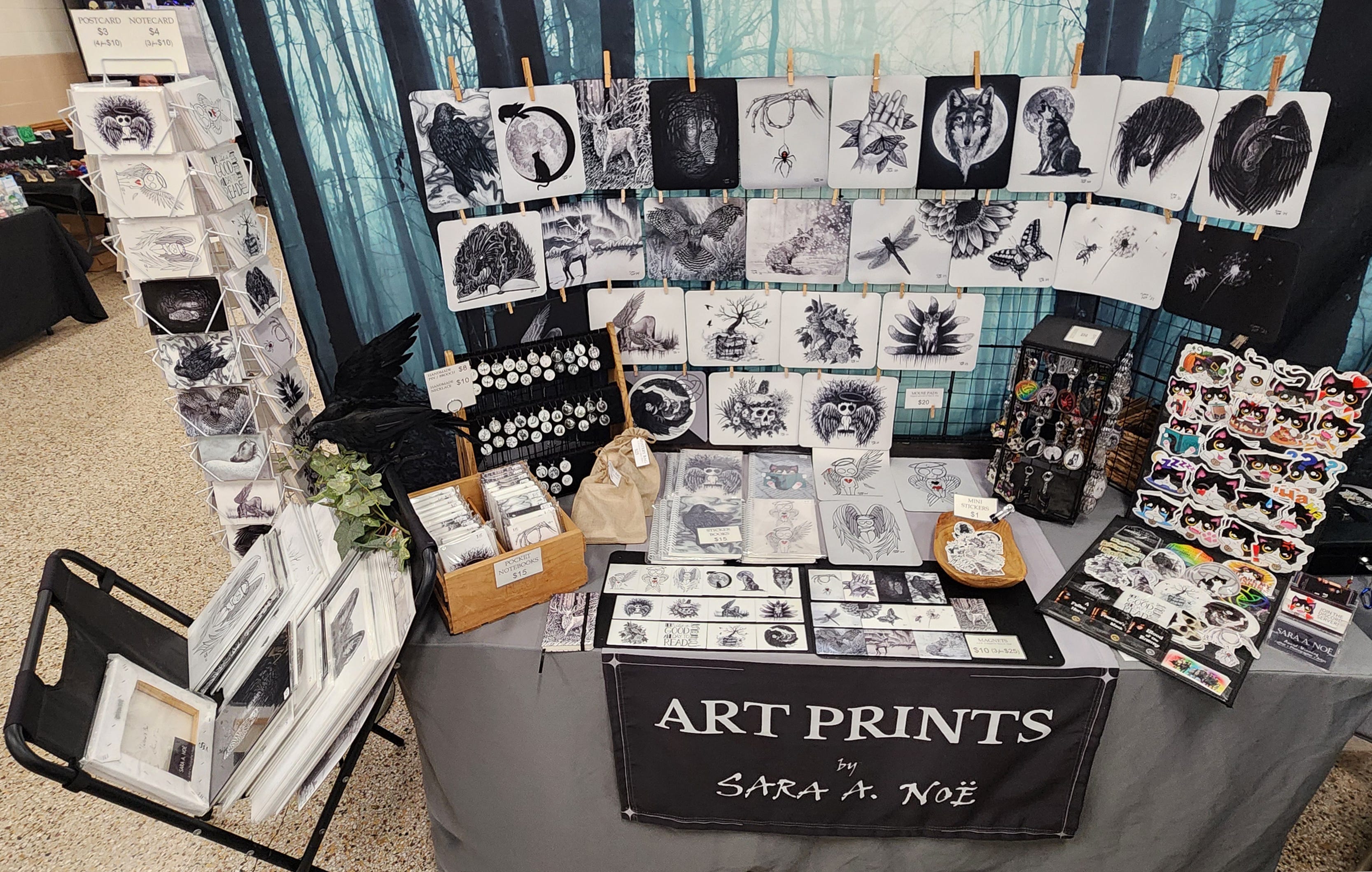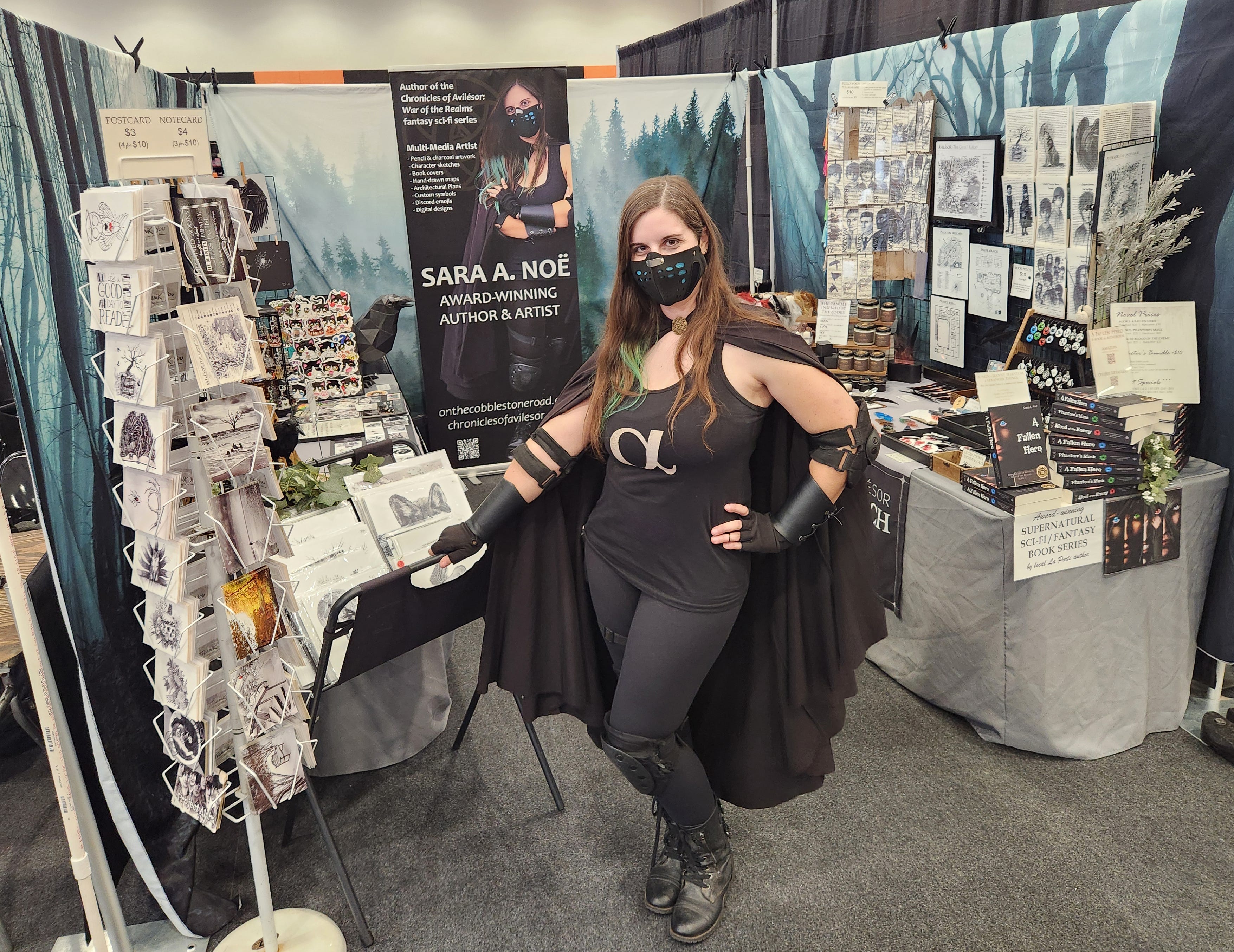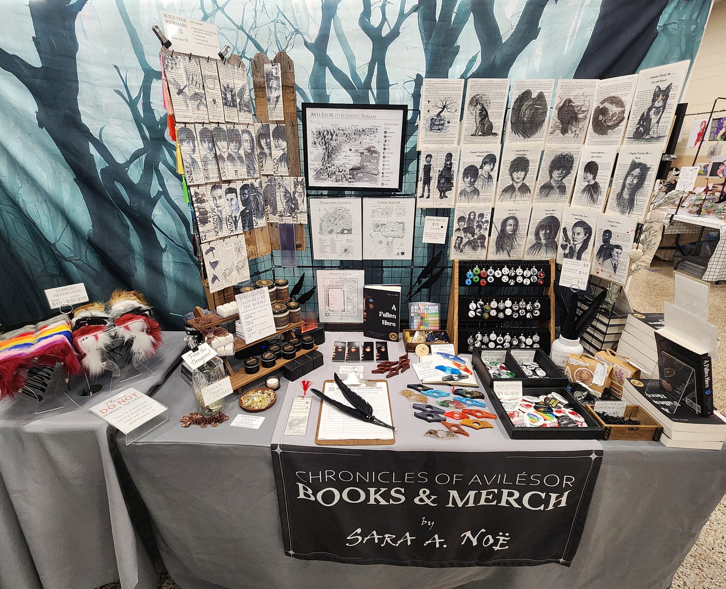 I also added new table covers to clearly convey the art side of the booth vs. the Chronicles of Avilésor & book merch side.