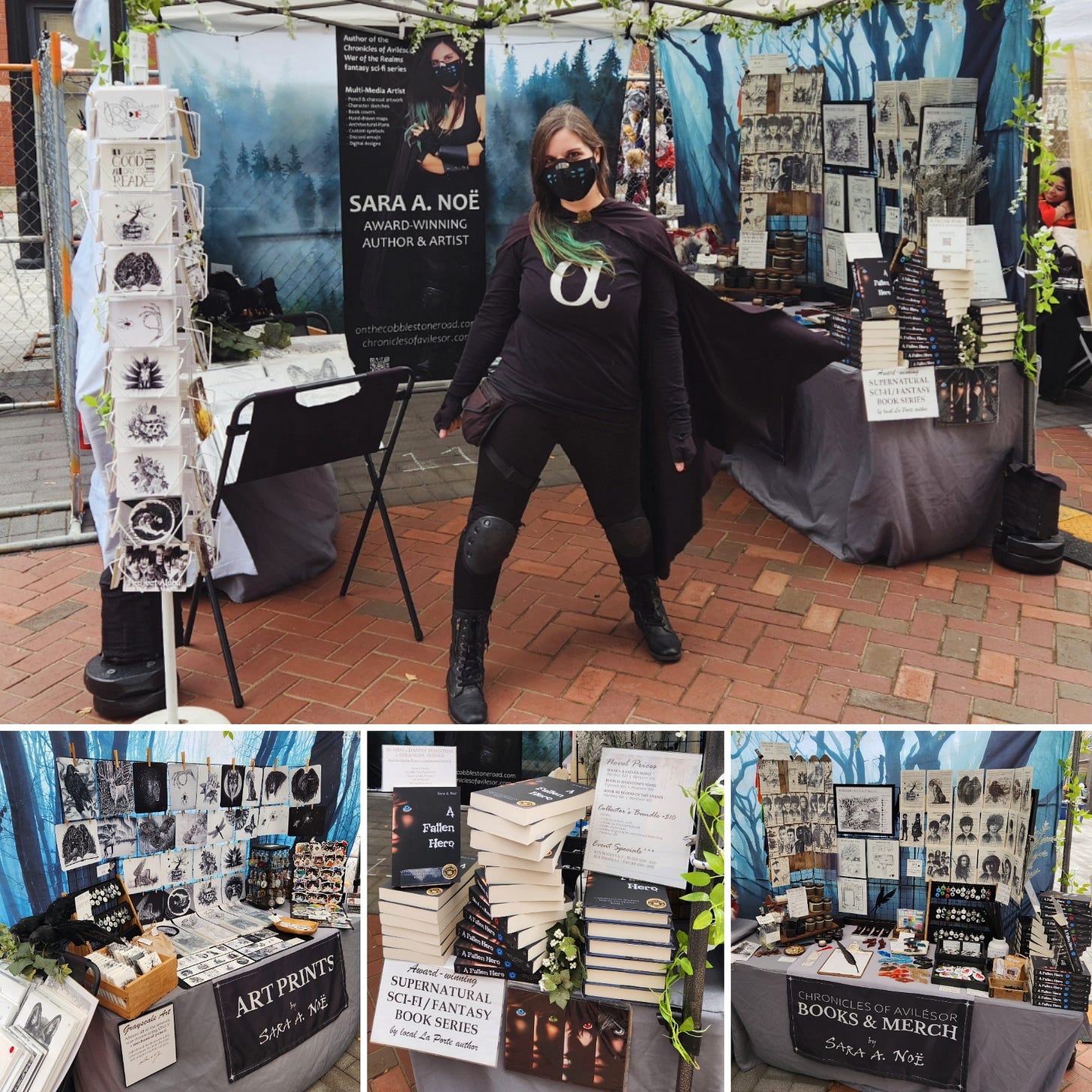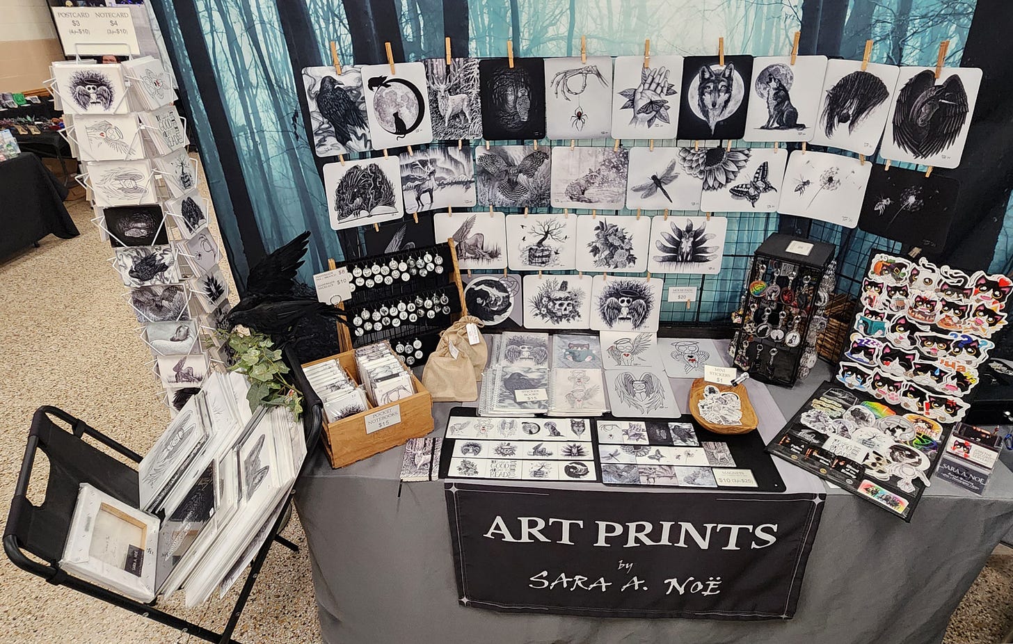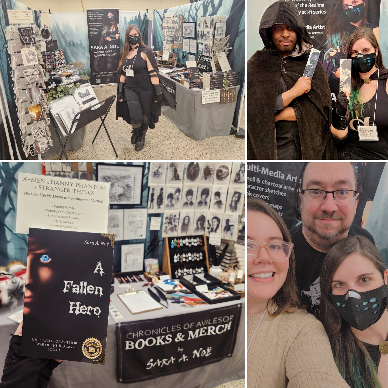 I also added new table covers to clearly convey the art side of the booth vs. the Chronicles of Avilésor & book merch side.