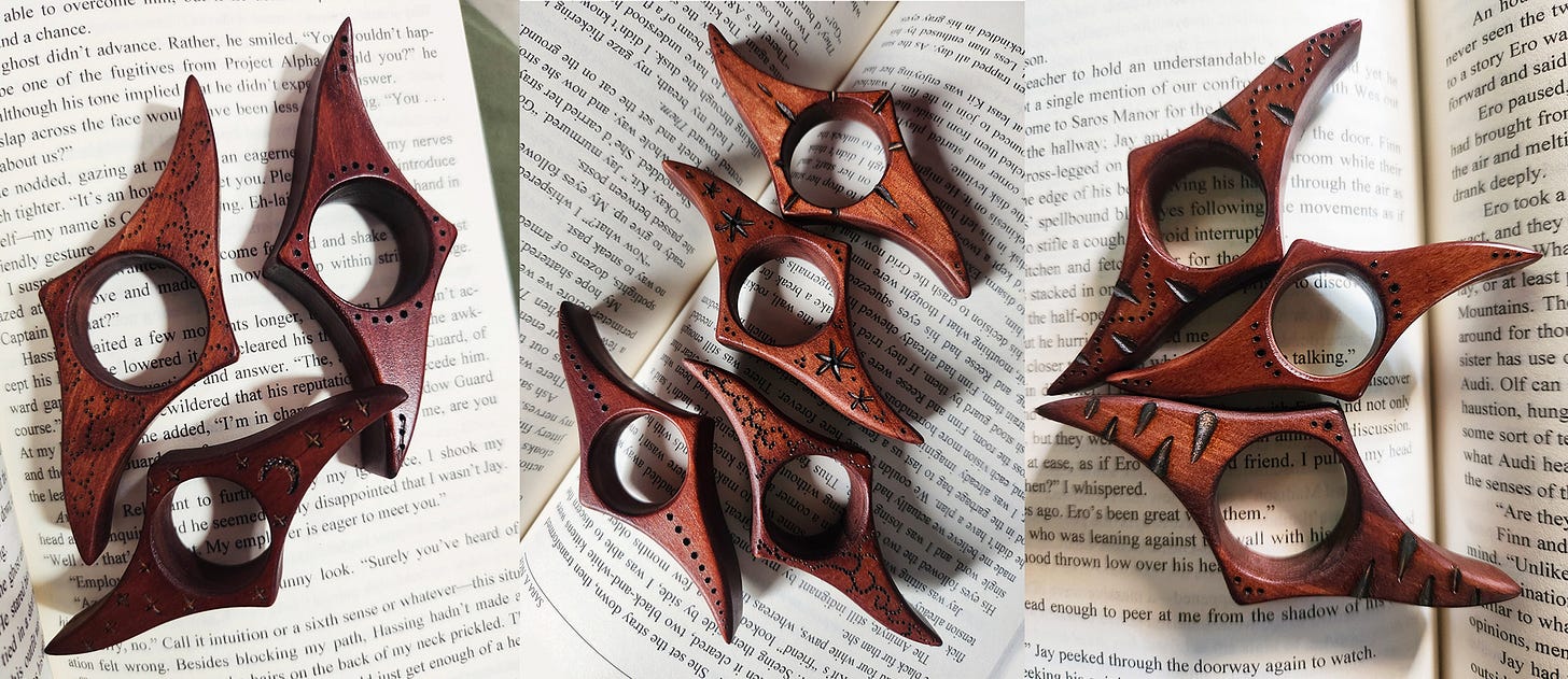 I’ve also added wooden page holders to my event-exclusive inventory. I use a wood-burning tool to customize each one with a simple design, and people seem to like having this lightweight option in addition to my slightly heavier handmade resin page holders. I don’t currently sell either version on my website since each one is unique.