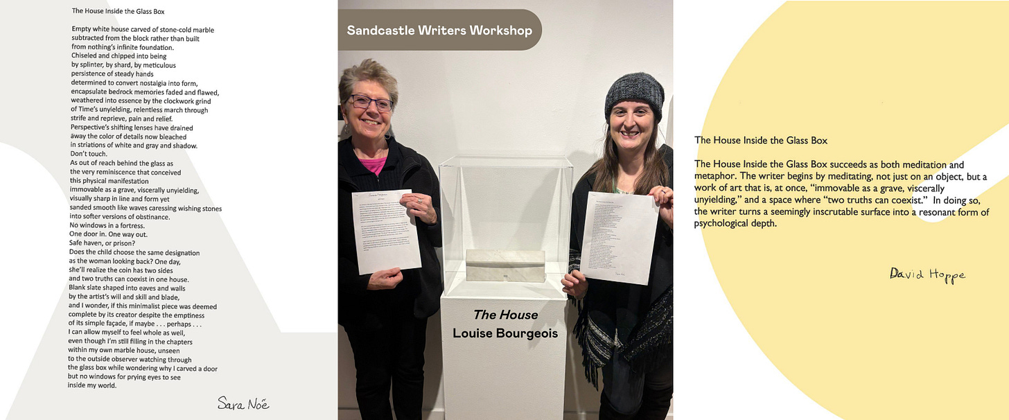 I participated in a local contest through the LCA Sandcastle Writers to create an ekphrastic piece about “The House,” a marble sculpture by Louise Bourgeois that is currently featured in the “Women to the Front: Artworks from the Sara M. and Michelle Vance Waddell Collection” exhibition at the Lubeznik Center for the Arts.
